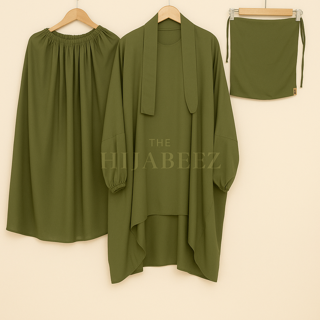 3 PIECE (NAQAB , JILBAB & SKIRT) - SEA GREEN/OLIVE