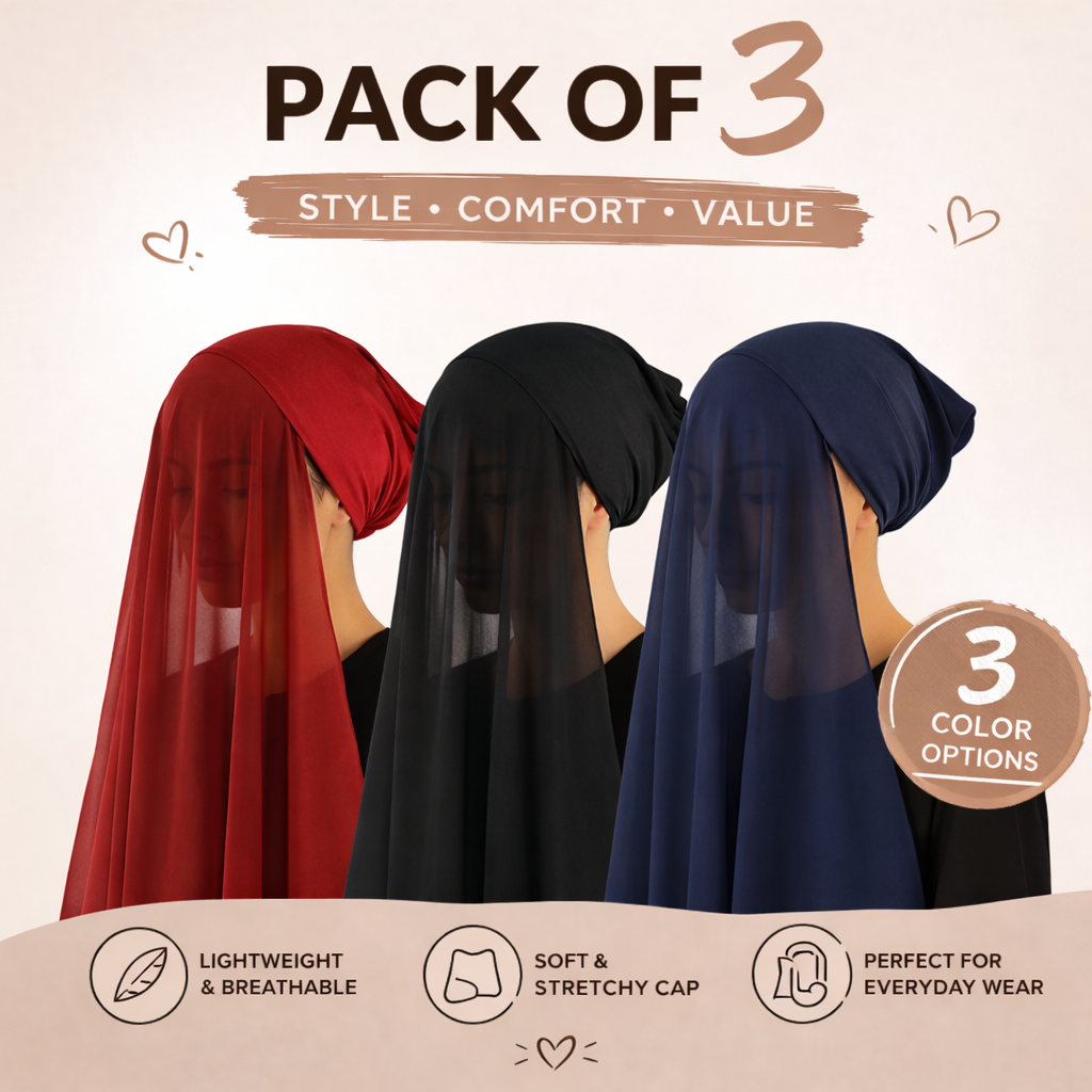 Instant Hijab with Stitched Cap – Easy Wear | By Hijjabeez